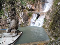 昨日の雨で いつもより多めの滝の水が心地よく流れています。