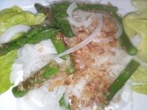 畑で採れたアスパラ、サラダ菜も加え いただきます!!